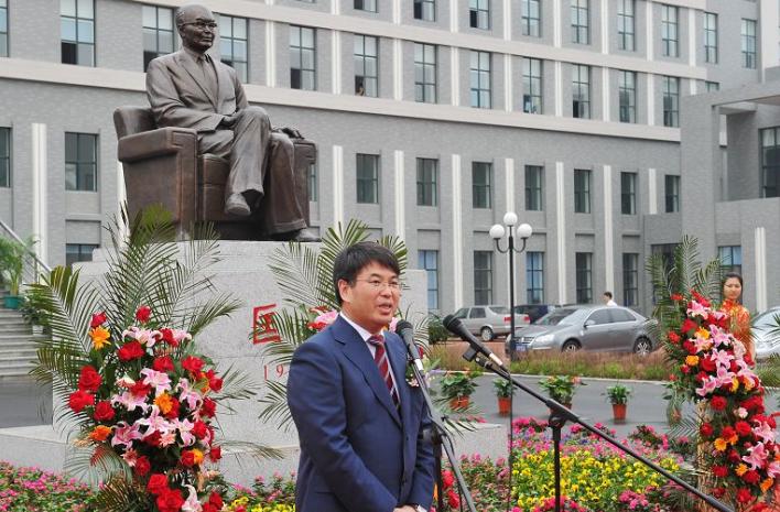 虽然天降细雨,但是8点左右,参加仪式的人员已经陆续到场,匡亚明楼前人头攒动。8时30分,仪式正式开始,党委书记陈德文和校长展涛共同为匡亚明楼揭幕,当巨大的红幕从匡亚明楼上缓缓滑落的时候,在场所有人鼓掌并持续良久。在刚刚揭幕的匡亚明楼前,匡亚明之子匡榕榕先生、校长展涛为匡亚明先生塑像揭幕,全体人员向塑像鞠躬致敬,并由学生代表为匡亚明塑像敬献花篮,以表达吉大人对匡亚明先生的缅怀与崇敬。